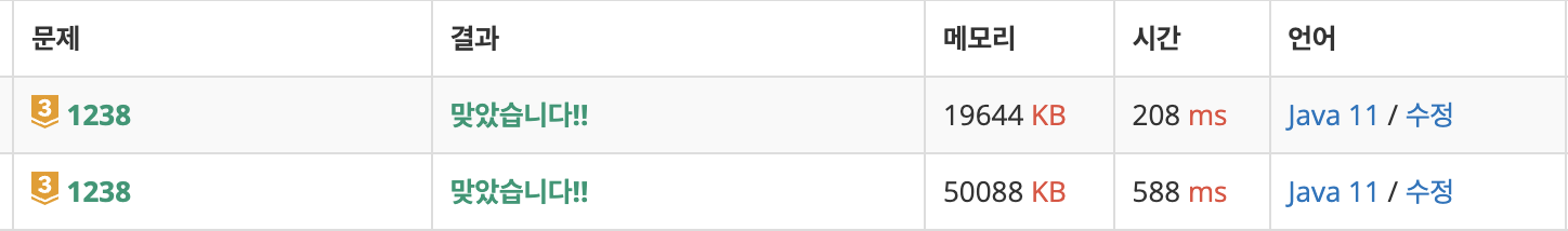 [수정 전 코드( 588ms) ]