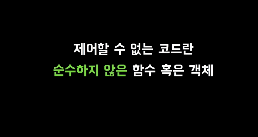 따라서 제어할 수 없는 코드란 순수하지 않은 함수 혹은 객체를 의미한다.
